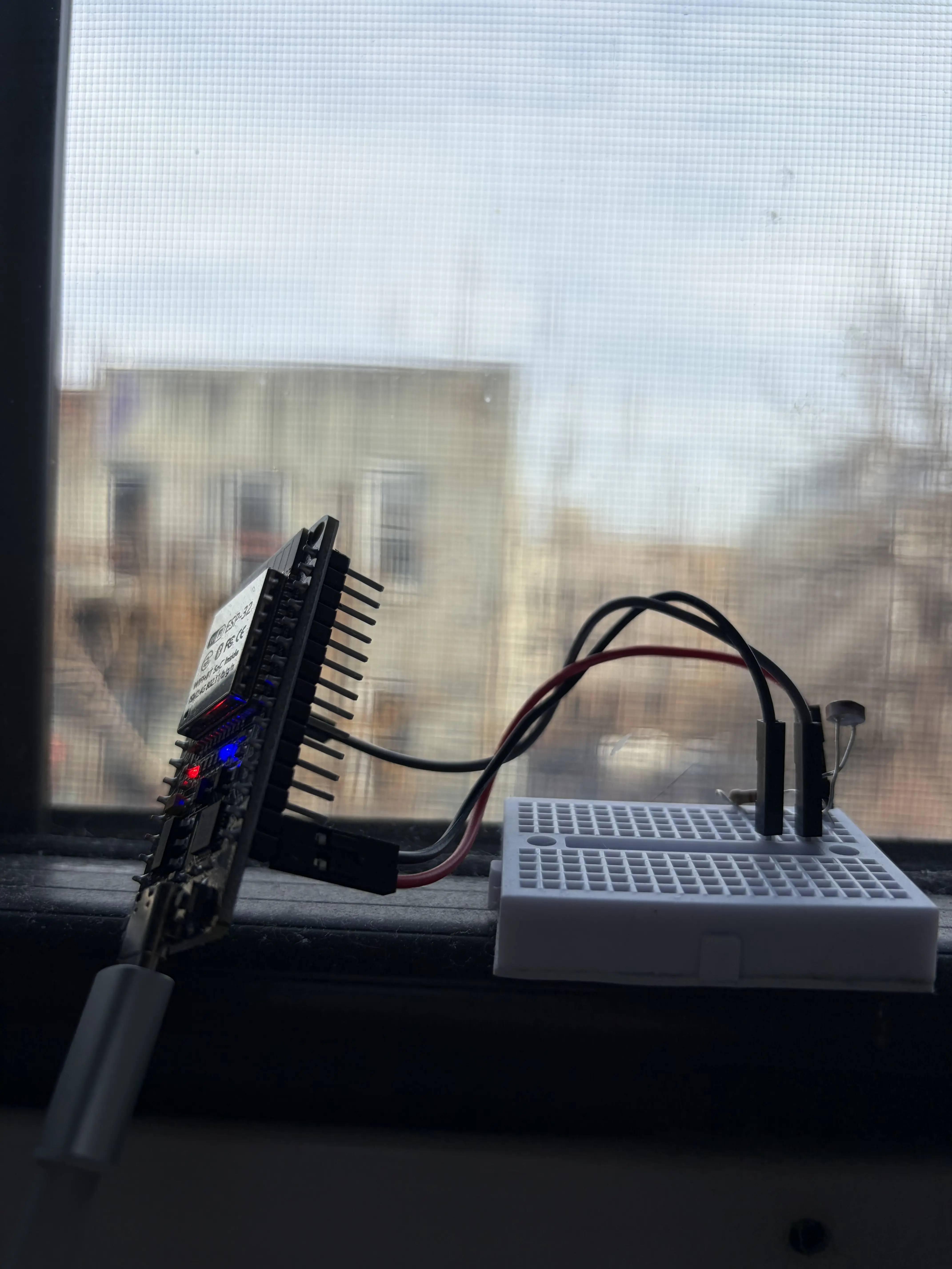 I shoddily pieced together a couple of circuits that are still on a breadboard. The breadboard adhesives are stuck onto the wall (NW) and on a slanted window ledge in the bedroom (SE). So the data that comes out of it tends to be affected by these conditions.