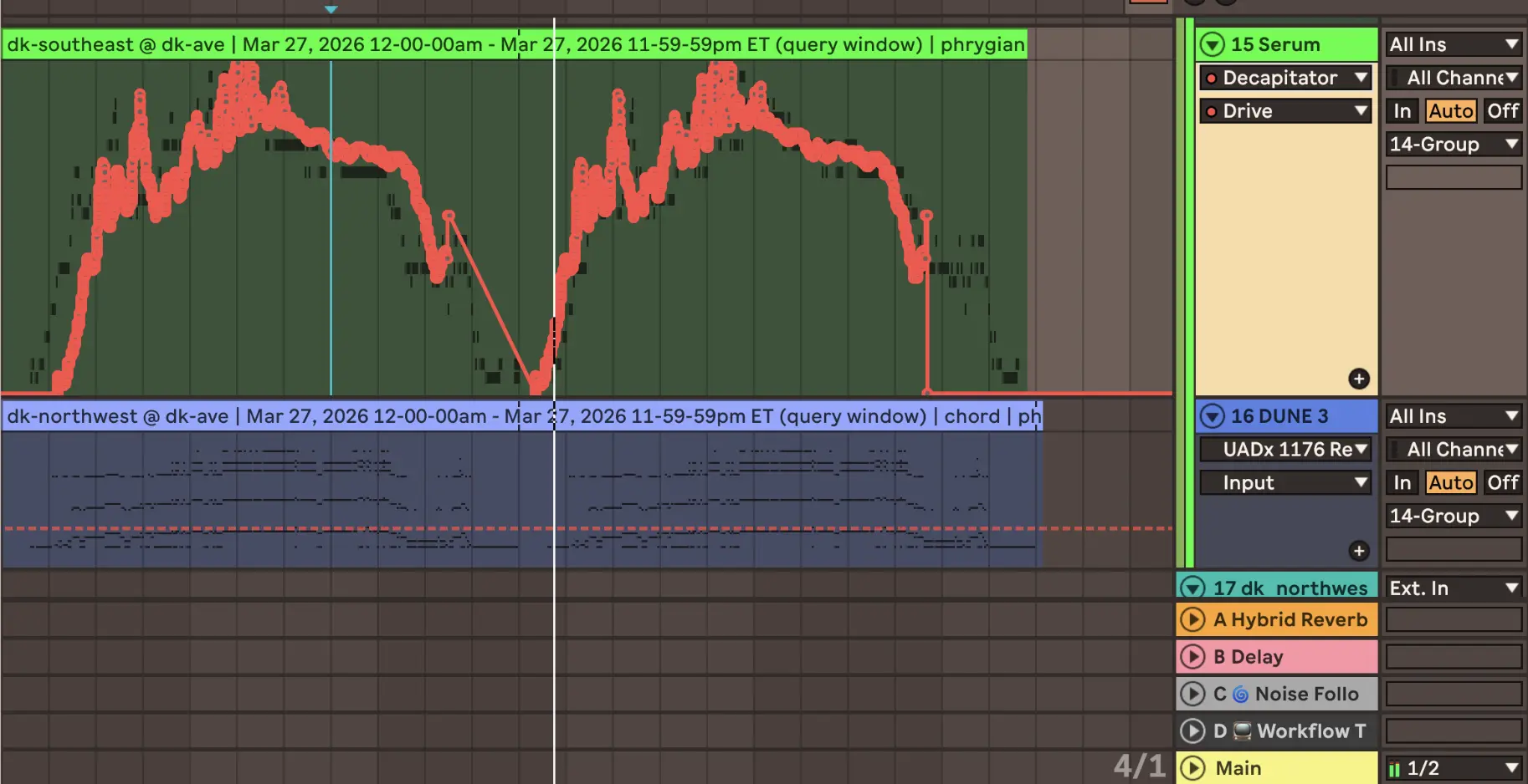 March 24 & 27 — exports folderMIDI, wavetable, and CC data for March 24, and March 27.I wanted this to be modular, so I can revisit days anytime and not have to play the score "live" in the studio (though this project is already built to extend to that for exhibition purposes!) While the dashboard shows the readings, these functions are run locally.