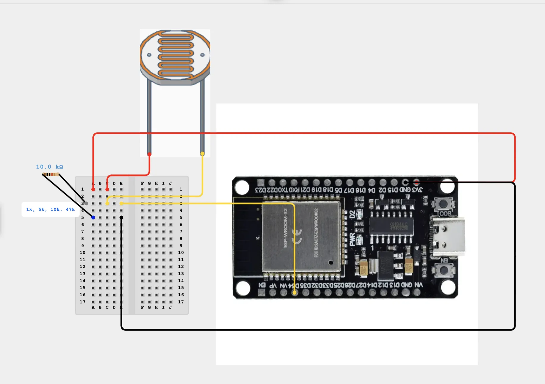 Natural processes and signals express and modulate in analog signals. To translate this into digital mediums, we can only approximate these signals. We can see this approximation occur in the first layer of our circuit, when the LDR sends readings through the ESP32's ADC bus (analog to digital converter) to translate light readings from 0-4095. (The same relationship happens when recording instruments into an audio interface when analog signals are captured into digital waveforms).